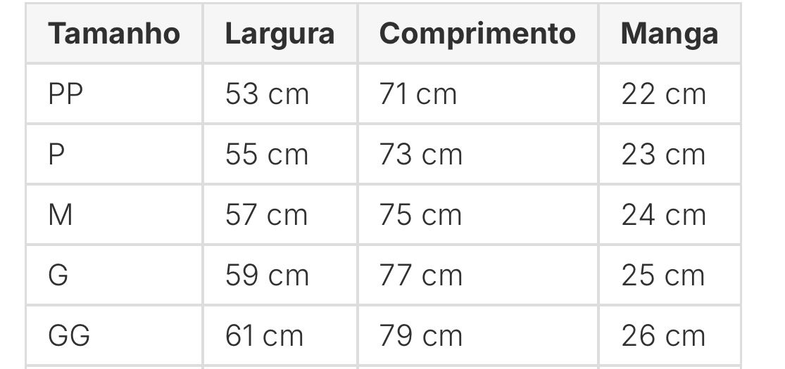 Produto de algodão: pode apresentar encolhimento natural de 3% a 5% após a primeira lavagem.